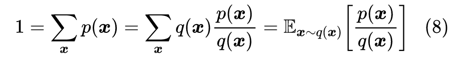 转化为从 采样来算 的期望了,也就是用 对每个样本进行加权,所以它被称为“重要性采样(Importance Sampling)”。如果只知道 ,那么重要性采样也是可以进行的,这是因为: