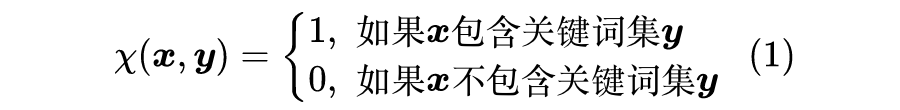 举例来说,用关键词造句,那么 就是关键词的集合,我们可以定义示性函数: