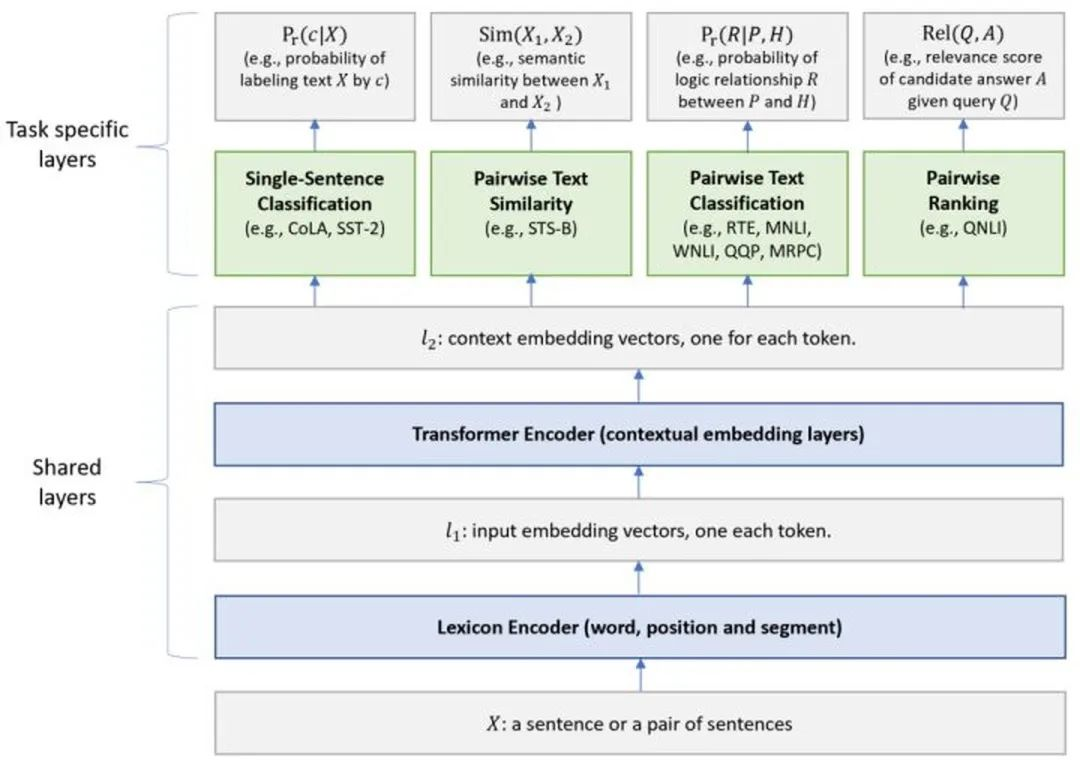 MT-DNN(Multi-Task DNN)在 Microsoft 于 2019 年发表的《Multi-Task Deep Neural Networks for Natural Language Understanding》中被提出。