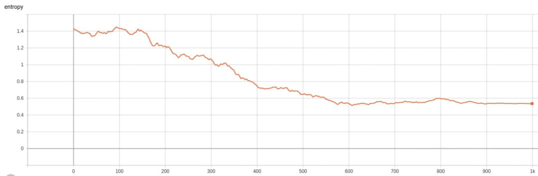 在 ppo 的 loss 中熵项的存在确实是希望动作随机保持探索,但最终 entropy 越来越大,也体现出 ppo 策略网络的不自信,我们考虑将 entropy 的系数变小。