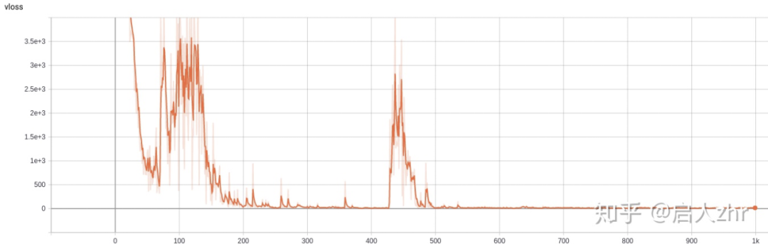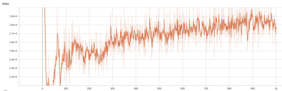 vloss 最终也能收敛到较小的值,但和 reward 类似在相同的地方出现了波折。