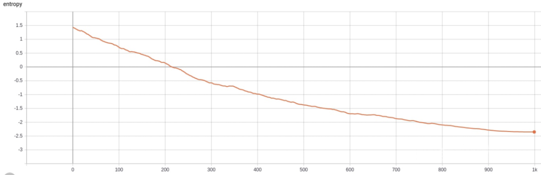 entropy 的变化幅度过快,最终值小于 0。这里简单提一下在连续密度分布中,熵值可能小于 0,拿高斯分布举例,如果其 sigma 过小,均值点处的密度概率可以远大于 1,熵值也为负数。综合来看,熵值出现小于 0 一般为 Actor 网络更新时sigma参数过小,可能是 actor 更新过快的原因。
