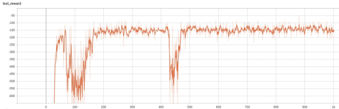 reward 最终能呈上升趋势最终达到一个不错的值,但美中不足在于中间出现两次波折。