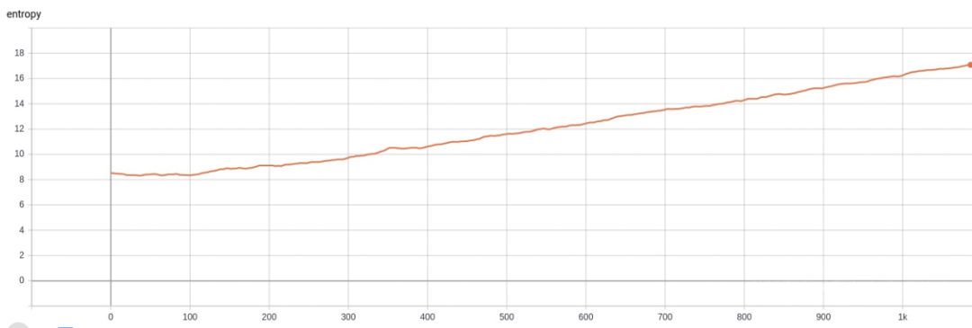 entropy在训练过程中由原来的8左右逐渐增大,这在以前的实验中都没有遇见。
