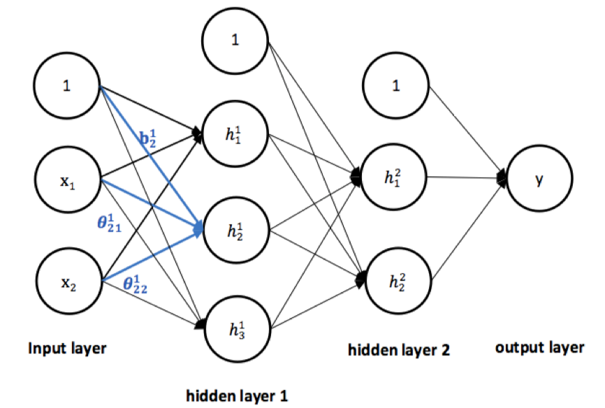如图 1,隐藏层 1 有 3 个神经元(注意不包括偏置项),其中 , 可以视为关于 x 的函数,我们也称之为神经元(neuron)或单元(unit),它接收上一层发出的信号 x,进行运算后将结果信号传递到下一层与其连接的神经元。如果某一层的任意神经元都分别连接到上一层的所有神经元,则该层称为全连接层(full connected layer,FC)。