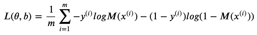 注意到我们用 Sigmoid 函数将模型输出 y 映射到(0,1)区间,但这里的 Sigmoid 通常不认为是激活函数,仅仅作为分类问题的归一化作用。 表示第 i 个训练样本,M(x) 表示模型的输出,则其误差函数(用小写 θ 表示所有模型参数)。