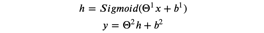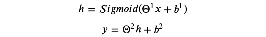 对于只有一个隐藏层的神经网络模型,以 Sigmoid 函数为激活函数,即: