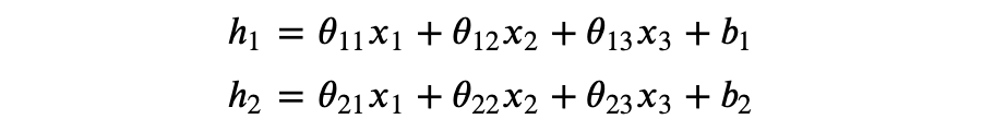 可以看到 的每个元素都是 的线性变换。一般地,对于权重矩阵 、输入向量 、偏置向量 ,可以得到 x 的线性变换 。