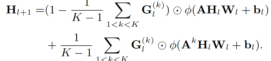 其中, G 是一个基于高阶邻接矩阵信息的门控矩阵,表示为: