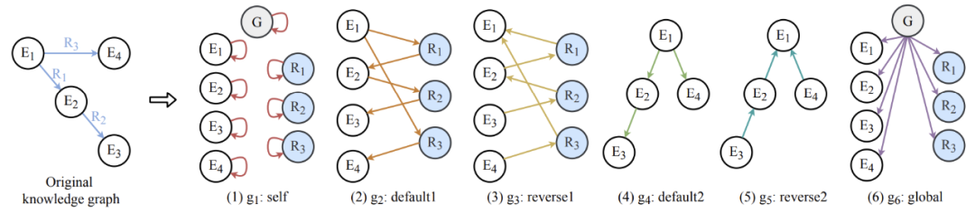 在 Levi 图中,我们不能很好的区分哪些点是原始图中的实体或关系,并且实体间的直接联系在 Levi 图中被忽略。另外,不同类型的边被融合在 Levi 图中一起学习,不能很好地区分不同类型边的不同重要性。