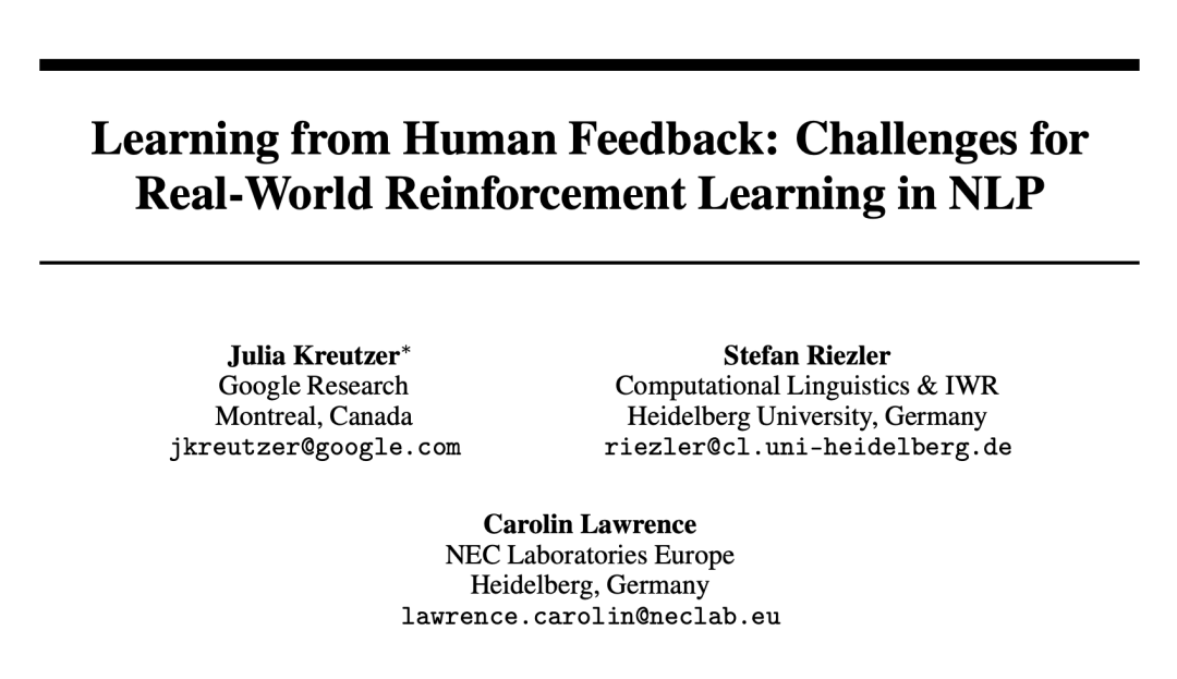 论文标题:Learning from Human Feedback: Challenges for Real-World Reinforcement Learning in NLP