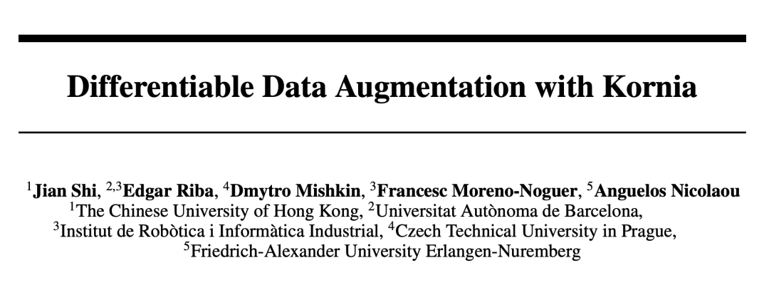 本文是香港中文大学发表于 NeurIPS 2020 的工作。该论文引入了基于 Kornia 的可微的数据增广方法并将其整合进了 PyTorch 工作流中。文章重点介绍了如何高效的实现可微的数据增广以及该方法的易用性。