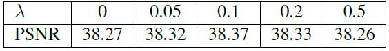 除此之外, 为了探究对比损失函数对模型学习表示能力的影响,研究者在 2 倍超分辨率任务上测试了对比损失函数占不同比例时模型的性能。表 5 展示了模型在 Set4 数据集上不同的对比损失函数权重得到的 PSNR。结果显示,相比不加入此损失(λ=0)的情况,对比损失函数能够进一步提升模型学习表示的能力。