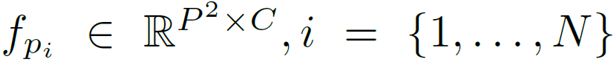 接下来,再对特征图进行切块与拉平操作。首先按照 P×P 的大小将特征图切割成 N 块,每一个特征块再被拉平为维度为 P^2×C 的向量,得到