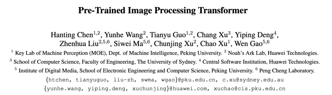 预训练模型能否在视觉任务上复刻在自然语言任务中的成功?华为诺亚方舟实验室联合北京大学、悉尼大学、鹏城实验室提出底层视觉 Transformer,使用 ImageNet 预训练,在多项视觉任务上达到 SOTA。