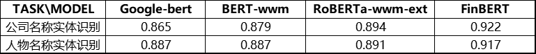 为了对比基线效果,我们从熵简科技实际业务中抽象出了四类典型的金融领域典型数据集,包括句子级和篇章级任务。在此基础上,我们将 FinBERT 与 Google 原生中文 BERT、哈工大讯飞实验室开源的 BERT-wwm 和 RoBERTa-wwm-ext 这三类在中文领域应用广泛的模型进行了下游任务的对比测试。