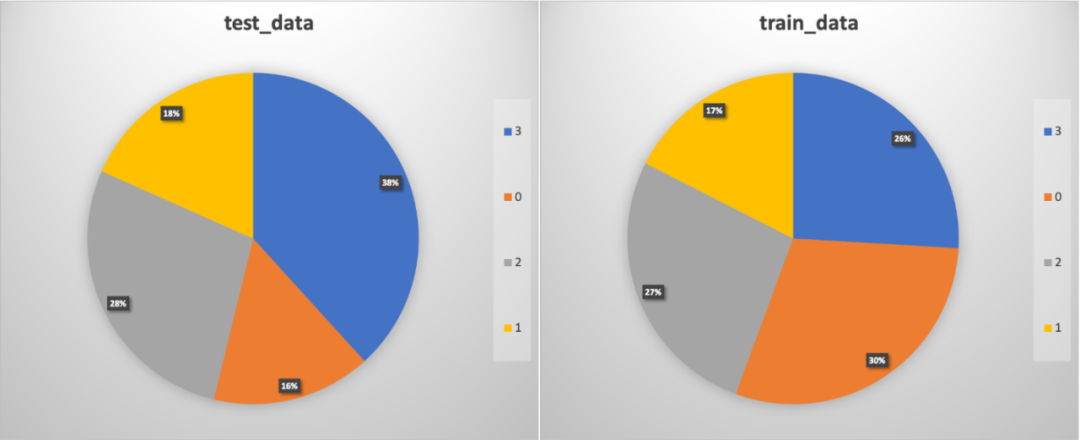 该任务的数据集共包含 3000 条样本,其中训练集数据约 1100 条,测试集数据约 1900 条,各类别分布情况如下: