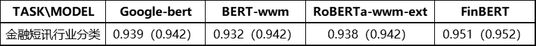 在本次基线测试中,我们以金融场景中所遇到的四类实际业务问题和数据入手进行对比实验,包括金融类短讯类型分类任务、金融文本行业分类、金融情绪分析任务以及金融类实体识别任务。