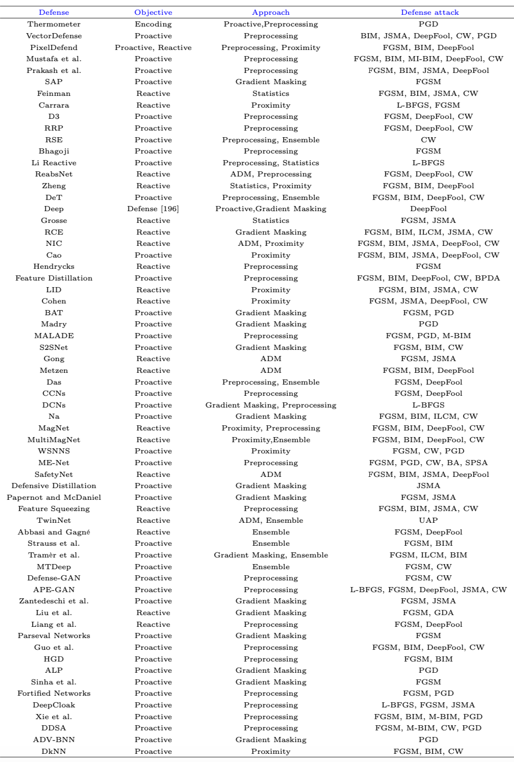 在该论文中,作者旨在为所有读者从防御者的角度上提供一个关于对抗机器学习在图像分类中的最新研究进展,并且作者对现有的对抗攻击和对抗防御的方法以及对抗样本产生的原因进行了分类和整理,非常全面值得一读。