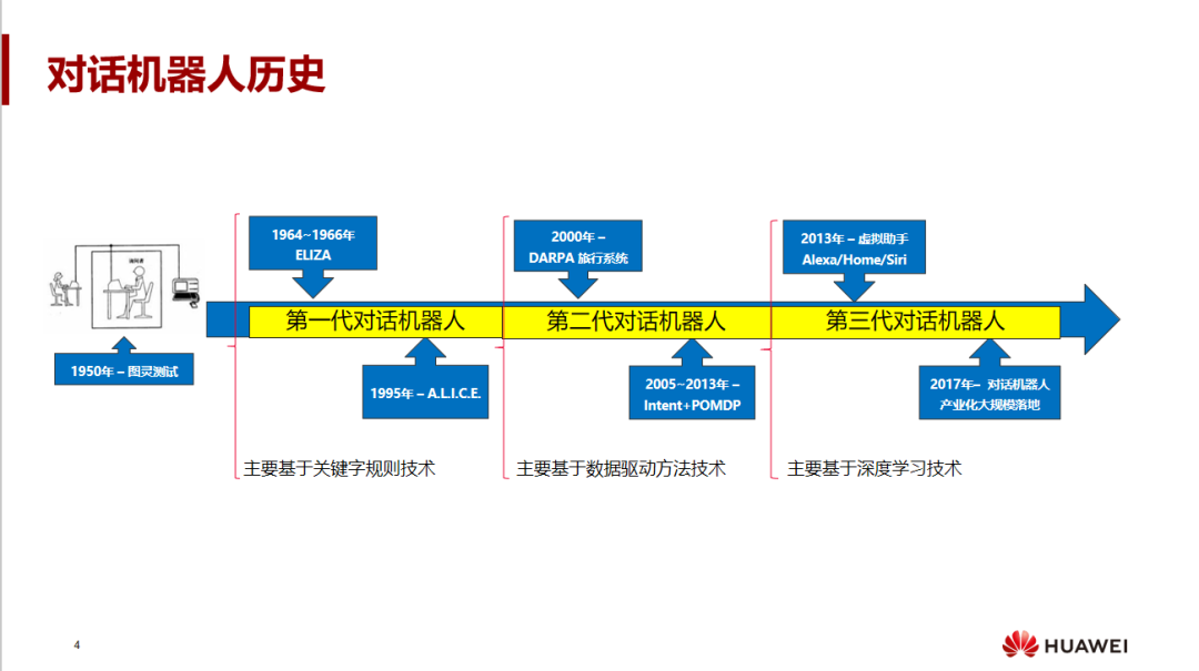 从 1950 年图灵测试的提出到现在,对话系统已经走过了将近 70 年的时间,在这期间对话系统技术得到了快速的发展。方法也从当初的规则演变成如今的深度学习方法,对话系统的鲁棒性和准确性都得到了大幅提升。