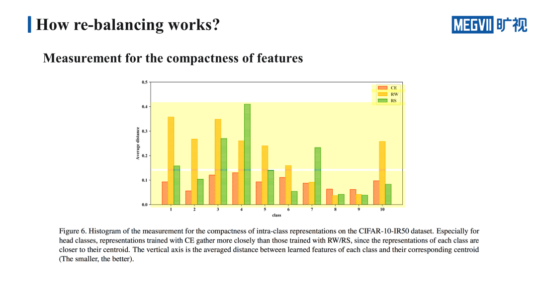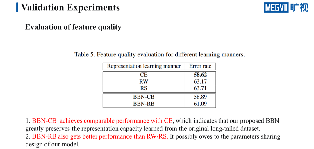 这些验证实验都证明了我们之前提出的一个猜想,也就是 re-balancing 这样一类的策略,它虽然提升了分类器的性能,但是却会在一定程度上损害特征的表示能力。