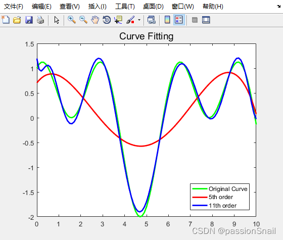 y5 = polyval(k5, x); % 得到离散的数值%% 11次多项式拟合