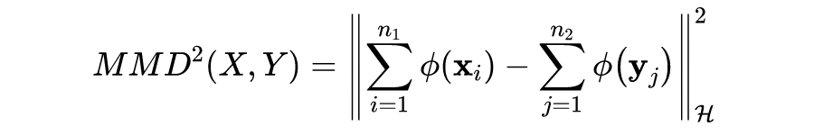 Maximum Mean Discrepancy(MMD):最大均值差异是迁移学习中使用频率最高的度量。Maximum mean discrepancy,它度量在再生希尔伯特空间中两个分布的距离,是一种核学习方法。两个随机变量的 MMD 平方距离为: