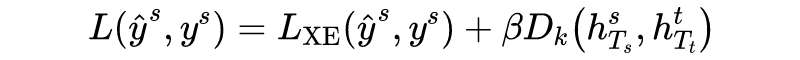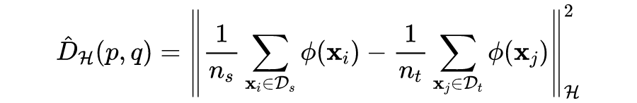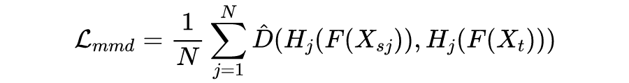 论文使用上式作为每个源域和目标域之间差异的估计。MMD 损失表述为: