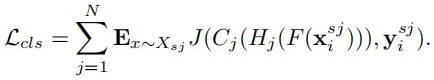 本文提出包括三部分:1)Common feature extractor :作为特征提取器的一个子网络,用于提取所有领域的共同特征 2)Domain-specific feature extractor:将每对源领域-目标域的提取特征映射到一个特定特征空间 3)Domain-specific classififier :由2)后对每对特定领域进行softmax分类输出对其使用交叉熵损失函数: