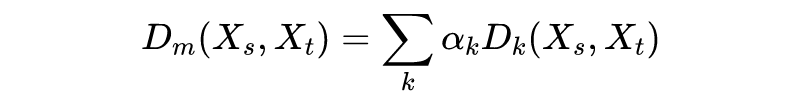 每个特定的特征提取器都可以通过最小化 MMD 方程来学习每个源和目标域对的域不变表示。