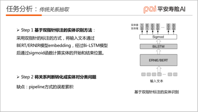 而传统的关系抽取一般分两步走,先识别出实体,再判断出实体之间的关系。实体识别通常有双指针方法以及深度学习模型+CRF等方法,关系抽取可以转化为分类问题。