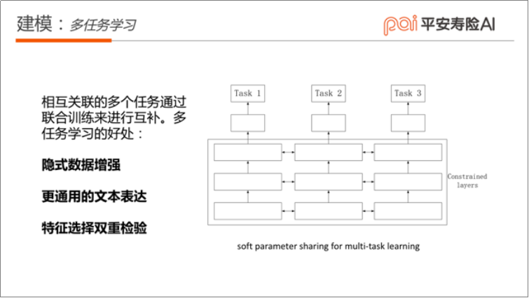 通常来说,多任务学习分为hard parameter sharing和soft parameter sharing, 其中soft parameter sharing每个任务有自己的参数,最后通过对不同任务的参数之间的差异加约束,表达相似性。