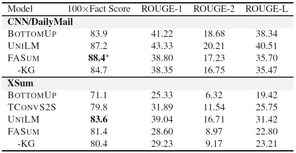 通过在基准数据集CNN/DailyMail和XSum的实验与分析,本文证明了该方法(FASUM)可以取得显著更好的事实性知识度,同时也具有抽象式文本摘要的灵活的特点。