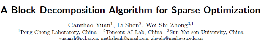 这次向大家分享的工作是鹏城实验室牵头,联合腾讯 AI 实验室和中山大学在 SIGKDD 2020 上发表的文章:A Block Decomposition Algorithm for Sparse Optimization。