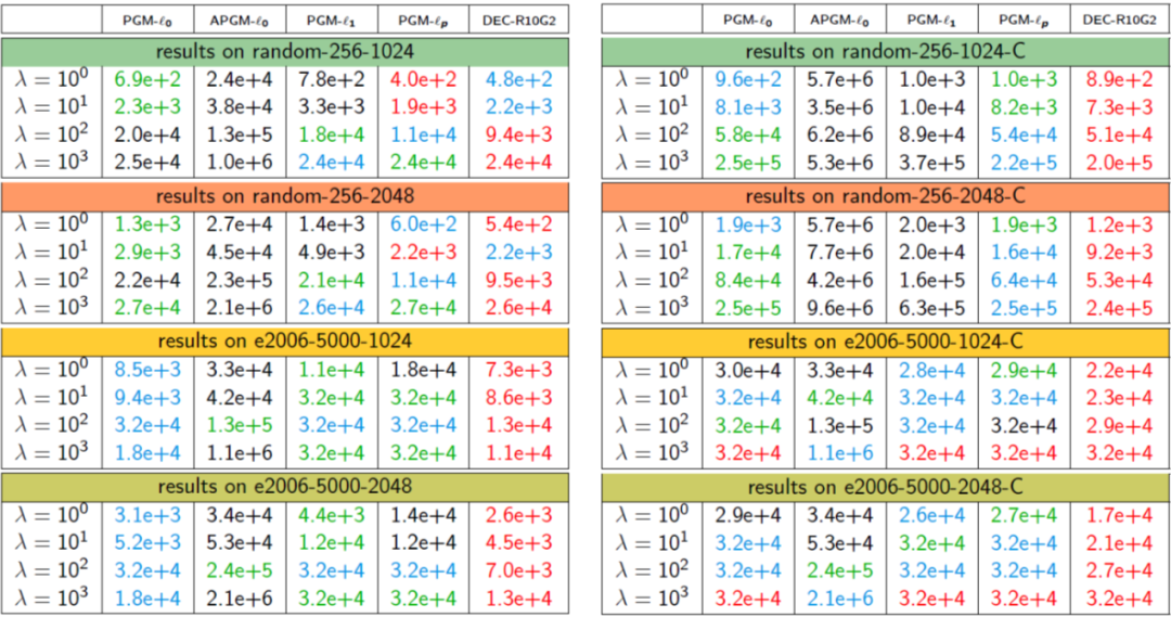 稀疏优化由于其内在的组合结构,一般比较难求解。组合搜索方法可以获得其全局最优解,但往往局限于小规模的优化问题;坐标下降方法速度快,但往往陷入于一个较差的局部次优解中。