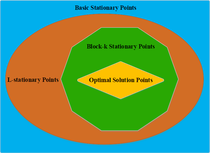这是我们提出的块 K 稳定点的概念。块 K 稳定点是指,当我们(全局地)最小化任意的 K 个坐标(其余的 n-K 个坐标固定不变),我们都不能使得目标函数值得到改进。