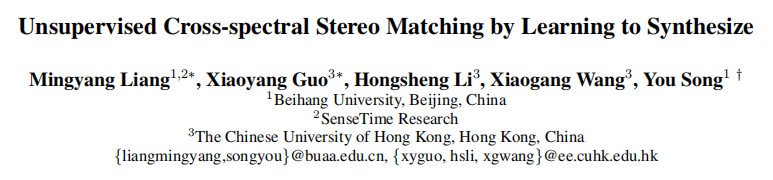 论文标题:Unsupervised Cross-spectral Stereo Matching by Learning to Synthesize