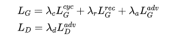 其中 F 将 编码到一个统一的特征空间 , 和 分别是将特征解码到相应谱得到图像的生成器。, 和 由对抗损失和循环重构损失监督。其中对抗损失由两个判别器 和 给定,判别器用来鉴别生成图像的真伪。