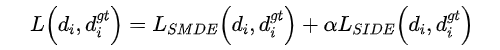 左图 WFOV 和右图 TFOV 作为输入,原有的 TW-SMNet 和 SHG-SIDE 共享特征提取模块 ResNet-50+SPP,之后同时进行单目逆深度估计任务和双目视差估计任务,对于得到的结果进行融合,从而能够得到在整个 WFOV 区域都估计较为准确的视差图。其总体损失函数为,其中 :
