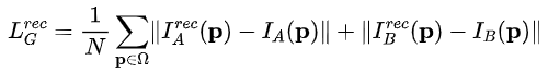 为了保证 将图像映射到相同的隐含语义特征空间,并防止 STN 学习视差,作者引入一个辅助的重构损失: