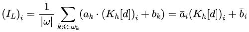 这里 是一个正则化参数。在本文中,作者以左图作为引导 , 以滤波体 的第 d 个切片作为输出 ,那么线性变换可以写作: