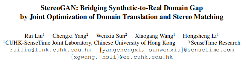 论文标题:StereoGAN: Bridging Synthetic-to-Real Domain Gap by Joint Optimization of Domain Translation and Stereo Matching