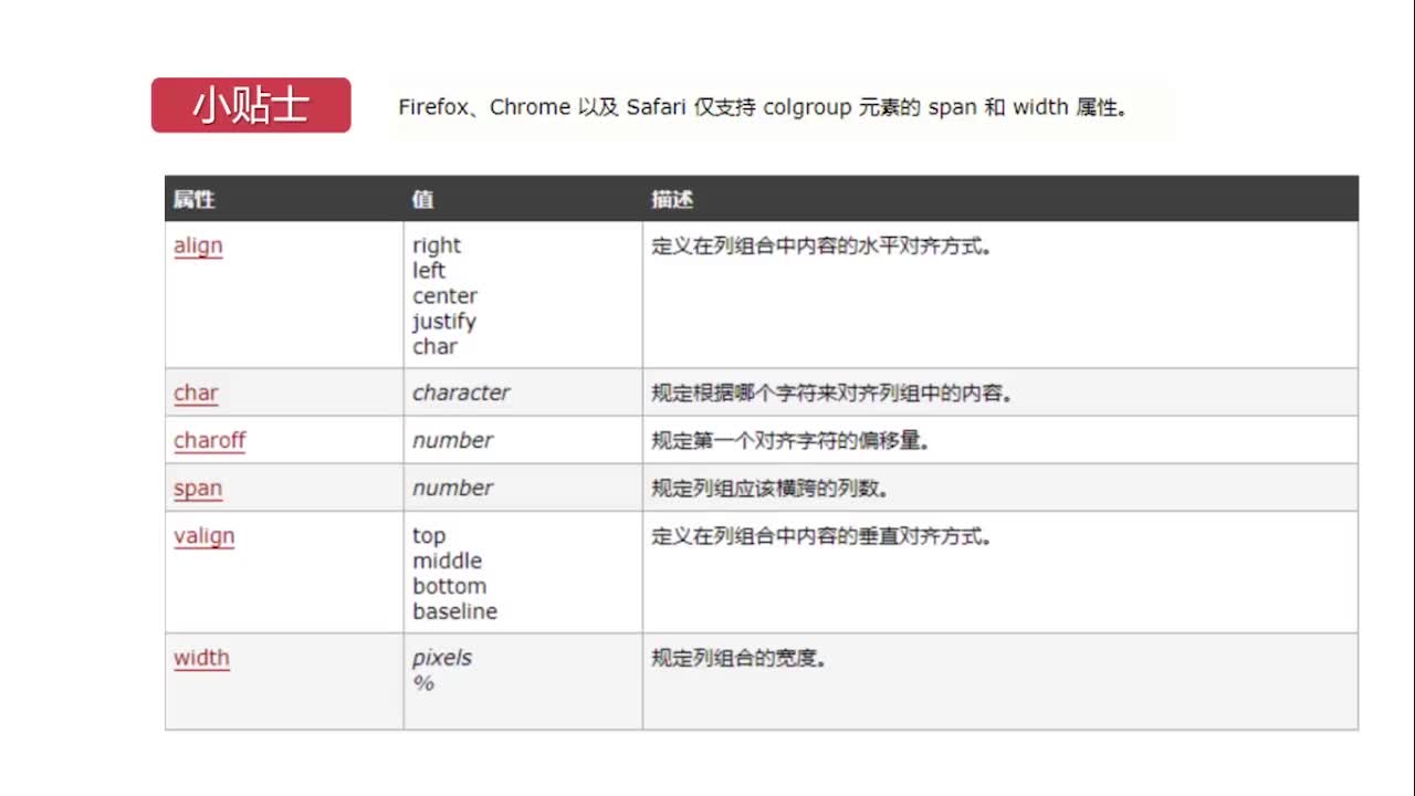 - colspan:列的合并,属性规定单元格可横跨的列数,colspan="3"就是合并三列。