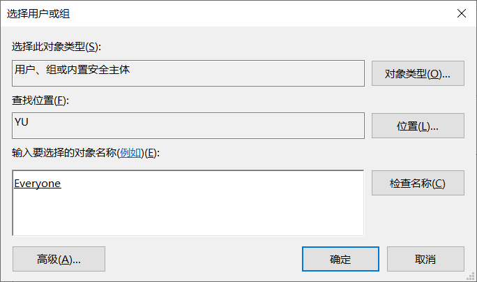 在输入框里面打个e,然后按检查名称,就会出现如上图所示的安全主体名称,确定后就可以修改安全里面用户们的权限了。否则的话这里会是灰色的,没法进行修改。