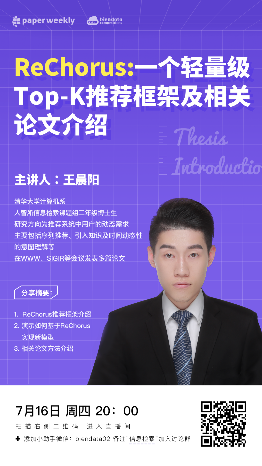 对本期主题感兴趣的小伙伴,7 月 16 日(周四)晚 8 点,我们准时相约 PaperWeekly B 站直播间。