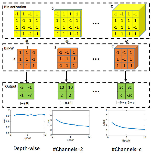 这项工作由卡内基梅隆大学,香港科技大学合作完成,目的是通过网络自动化搜索,找到在已知网络的权重(weight)和激活值(activation)都为二值化{-1,+1}的情况下,搜索最能充分利用二值化卷机层的表达能力的网络结构。