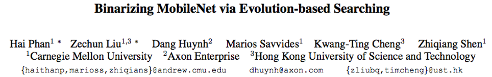 论文标题:Binarizing MobileNet via Evolution-based Searching