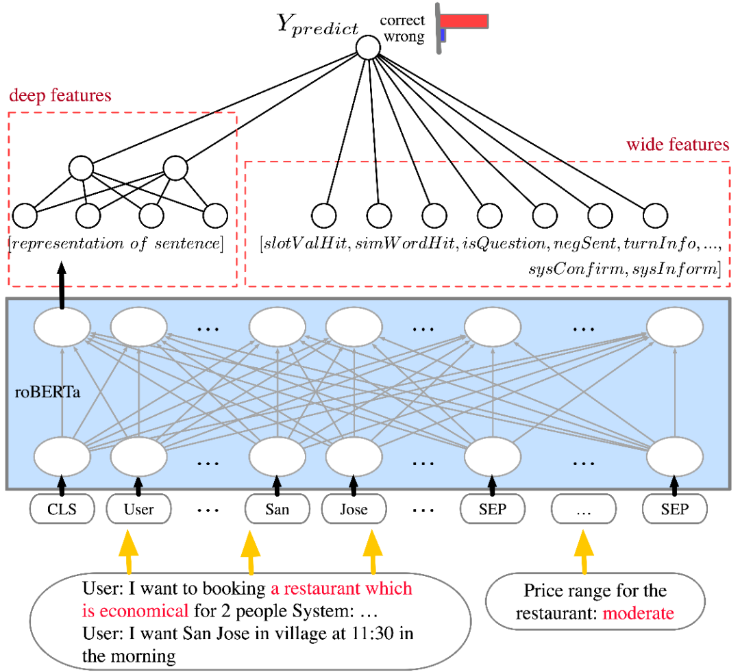 综合深度和离散两类特征,建立了一个 Wide & Deep 的分类模型(WD-DST)来解决这类槽位的追踪问题。