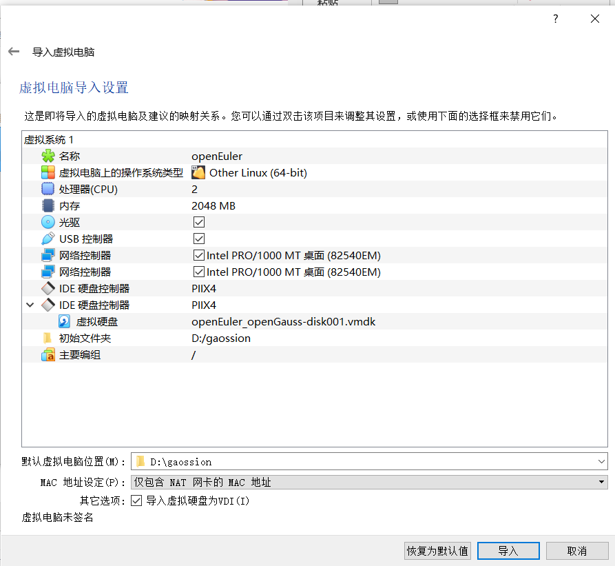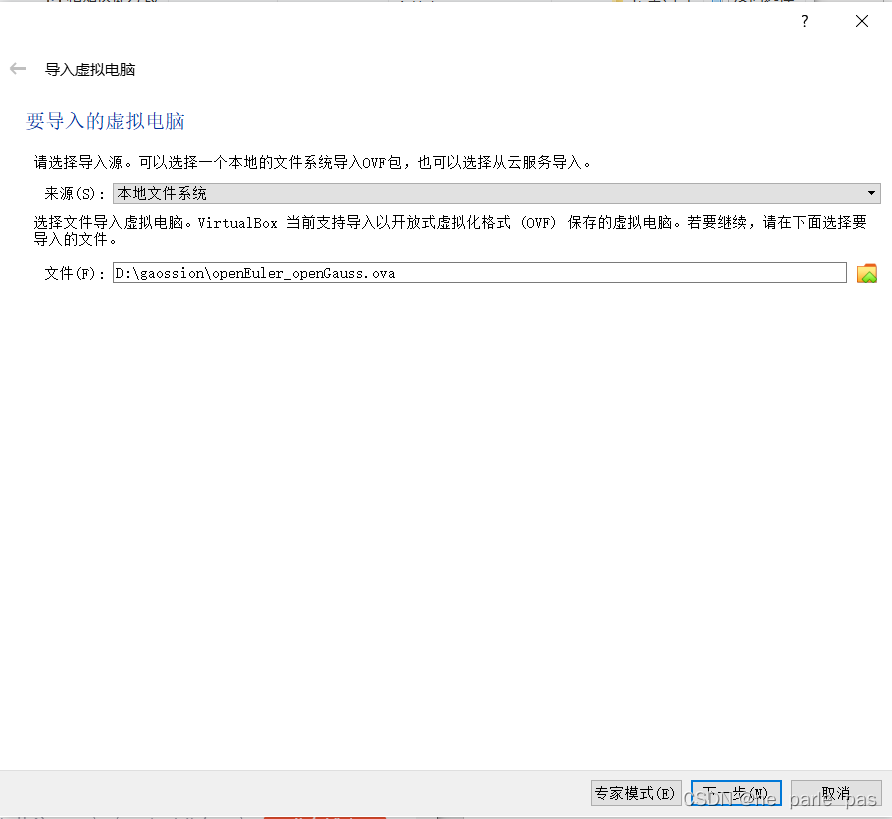 安装好虚拟后我们还要下载镜像文件,文件名为 openEuler_openGauss.ova