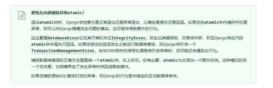 1不推荐在with transaction.automic中去捕获异常